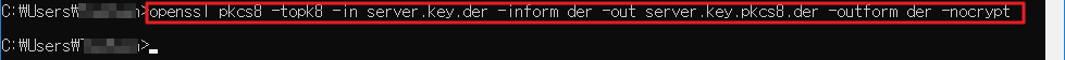 openssl pkcs8 -topk8 -in server.key.der -inform der -out server.key.pkcs8.der -outform der -nocrypt