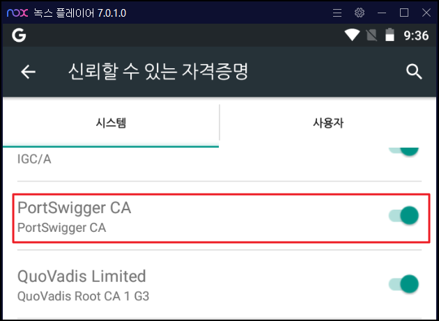 먼저 아래 방법을 간단히 설명하면, 임의의 사용자 인증서를 생성하고, 해당 인증서를 Android 시스템 디렉터리에 업로드하여 재부팅하면 Android 7.0 버전 이상에서 Burp를 사용할 수 있습니다.